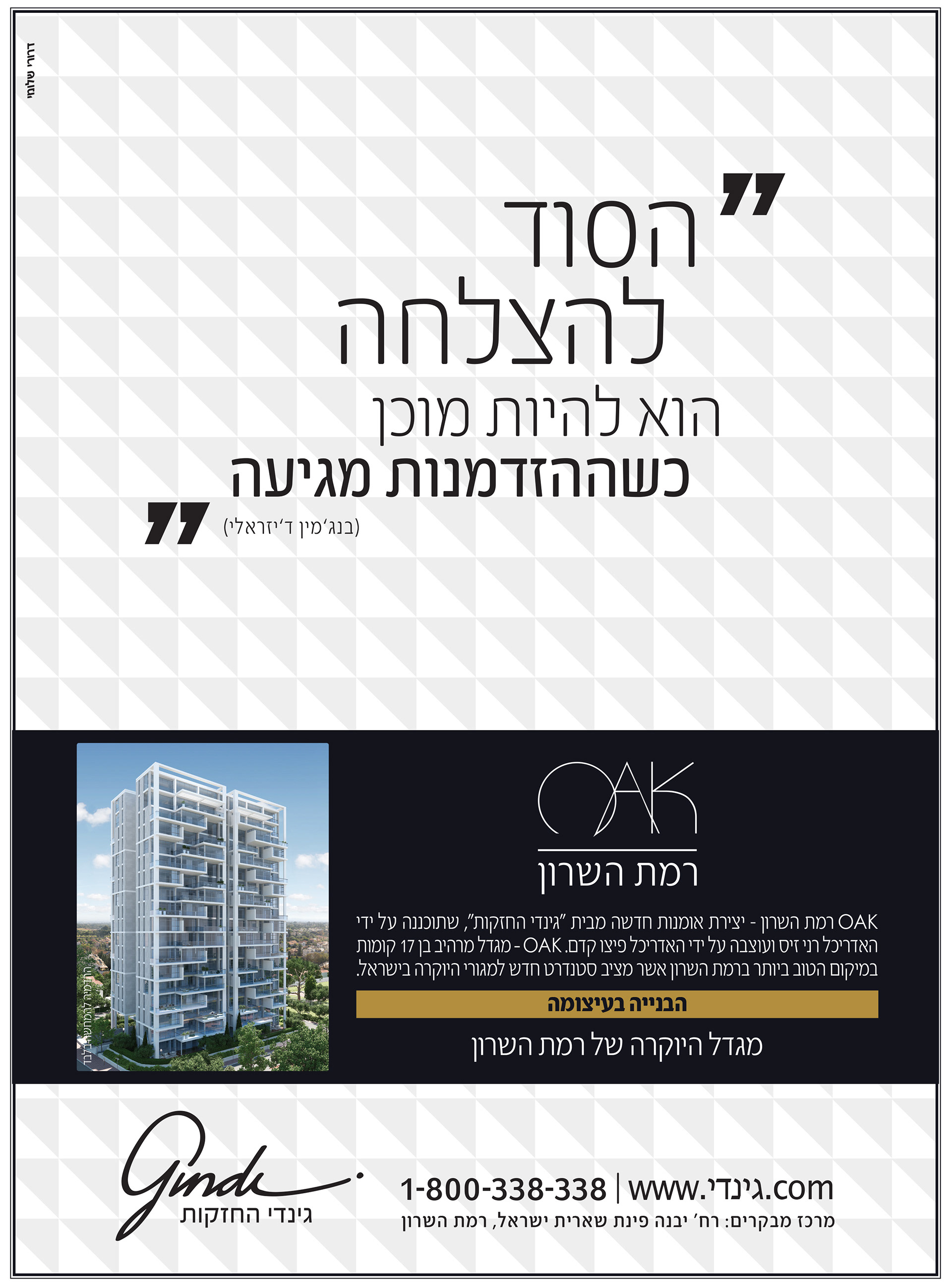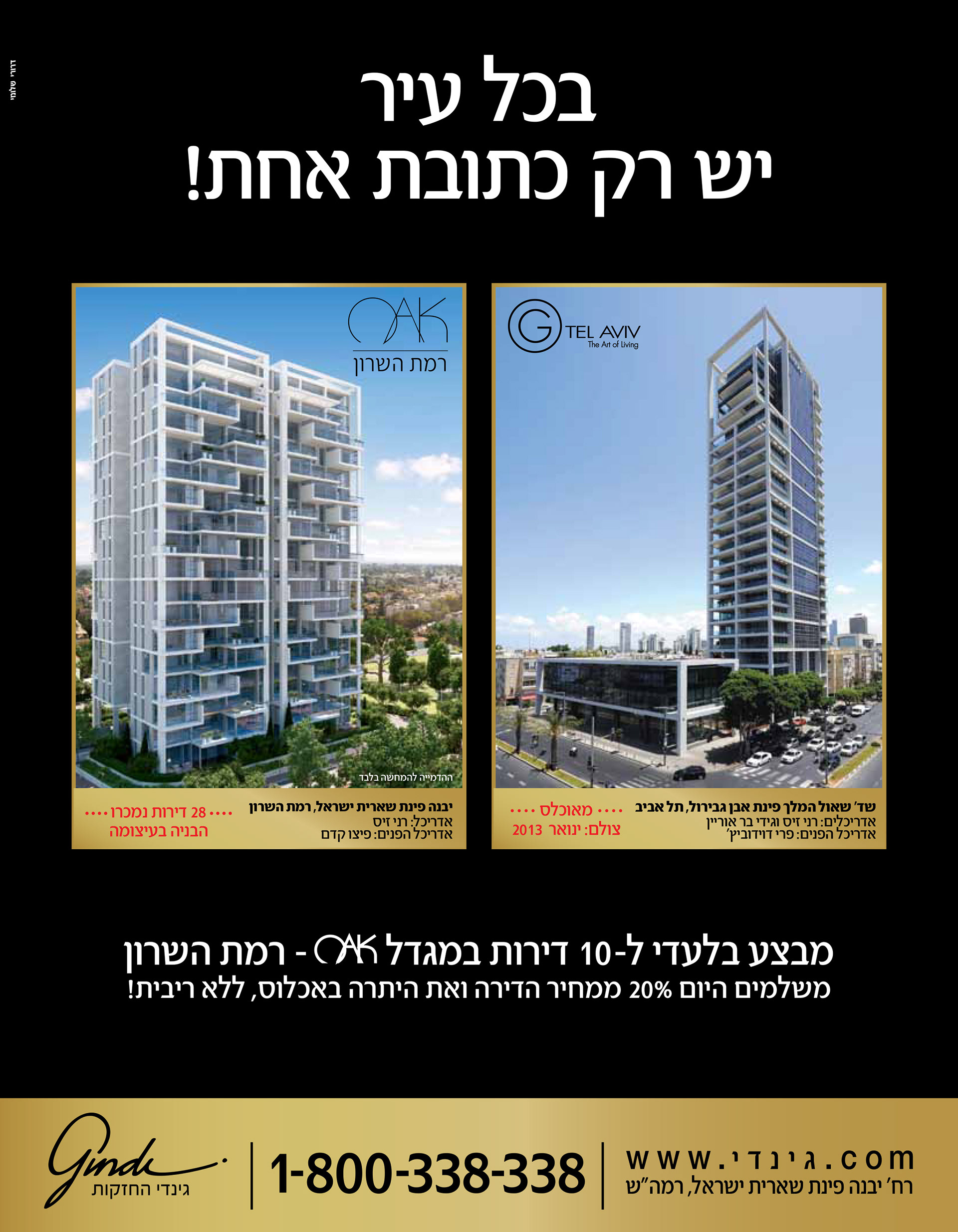 A series of ads for the Oak tower . A premium real estate project in a premium location in Israel. Tone & style was high-end, artistic and elegant